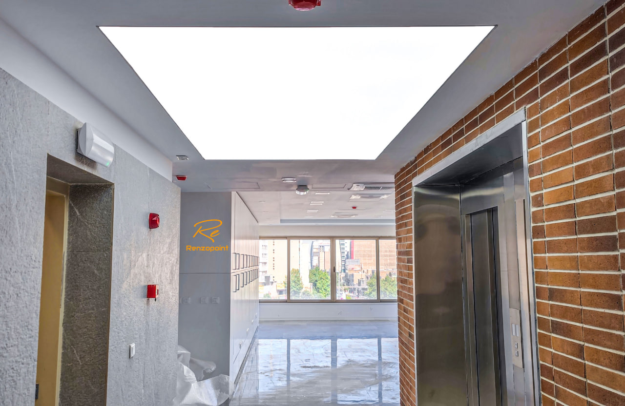- پنلهای LED: در برخی پروژهها، به خصوص برای فضاهای بزرگ یا زمانی که نیاز به نور بسیار یکنواختتری است، از پنلهای LED بزرگ در پشت سقف استفاده میشود. این پنلها نور را به صورت گستردهتر پخش میکنند.